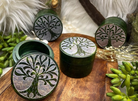 Lebensbaum Döschen aus Speckstein für Kristalle, Schmuck oder andere Schätze/ Yggdrasil