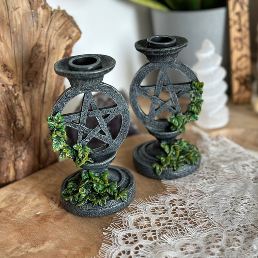 Kerzenständer Pentagramm mit Efeu 2 Stück