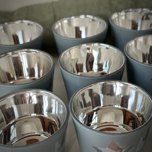 Teelichtglas „Sternenglanz“ – Grau, Innen Silber