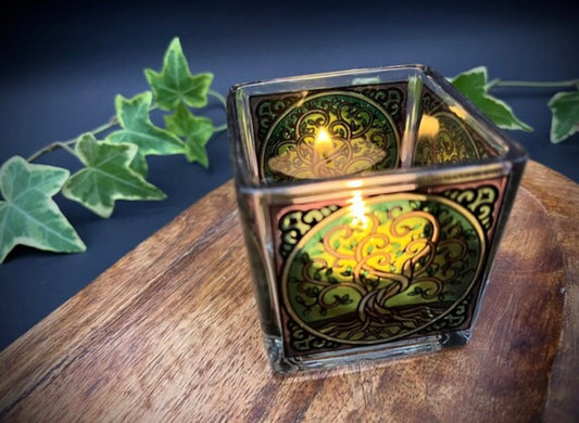 Kleines Windlicht Teelichtglas Baum des Lebens / Yggdrasil