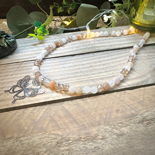 Mystischer Schmetterling – Halskette mit Mondstein & Edelstahl-Anhänger
