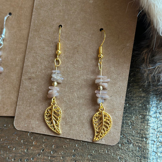 Mystische Edelstahl-Ohrringe mit Blatt-Anhänger & Mondstein-Splittern