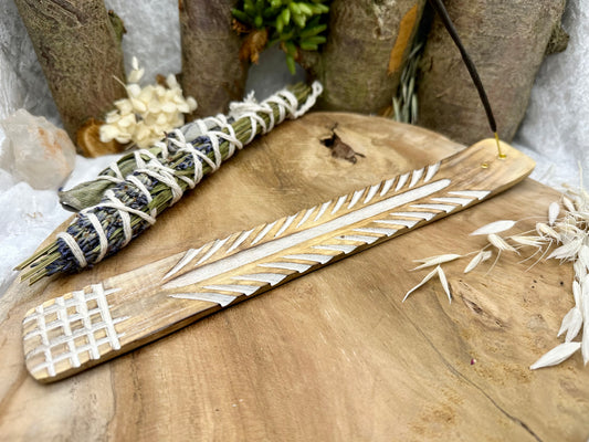 Räucherstäbchenhalter aus Holz mit Ornament-weiß gewachst