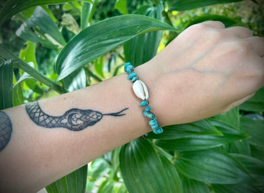 Muschel-Armand oder Fußkettchen mit Heilstein Türkis Splitter/- leicht , locker , nickelfrei