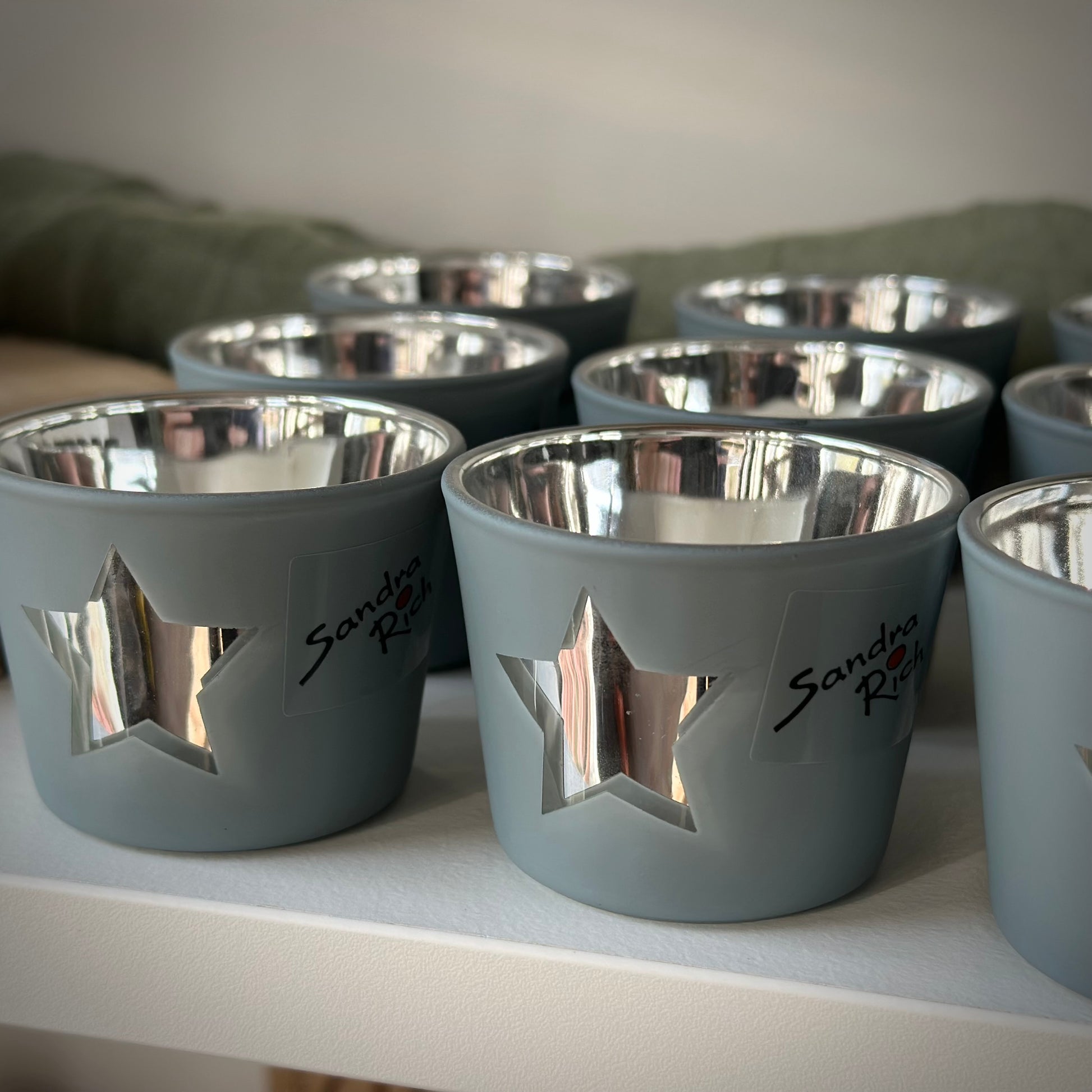 Teelichtglas „Sternenglanz“ – Grau, Innen Silber